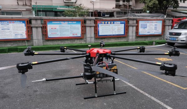 This JingHong FR300 Firefighting Drone, capable of carrying a 150 kg payload, is designed for rapid aerial suppression.